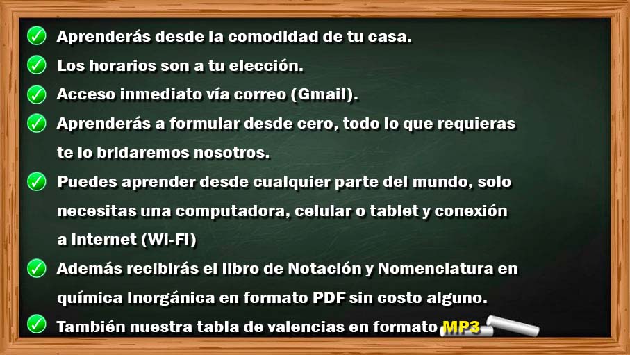 Es por eso que te ofrecemos este curso ya que consideramos importante el aprender a formular y nombrar correctamente los compuestos químicos.